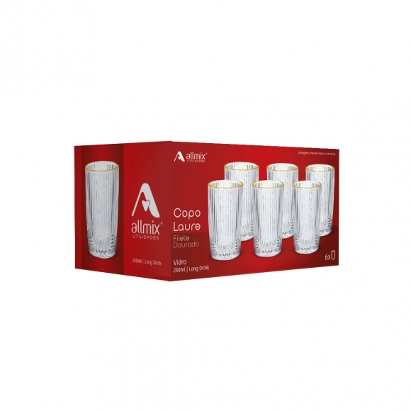 Este link contém: o Copo de Vidro Long Drink Laure Filete Dourado 250ml, uma peça que une sofisticação, praticidade e design elegante. O delicado filete dourado realça a apresentação das bebidas, tornando-o ideal para mesas refinadas, restaurantes, hotéis ou ocasiões especiais em residências.
