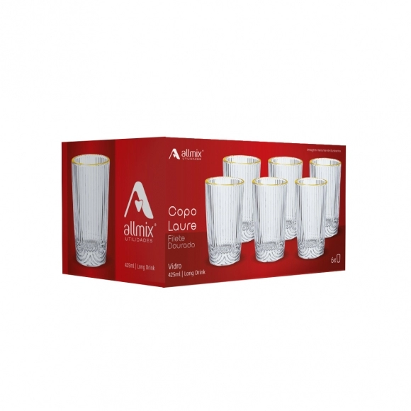 Este link contém: o Copo de Vidro Long Drink Laure Filete Dourado 420ml, uma peça exclusiva que combina sofisticação e praticidade. Seu delicado filete dourado confere elegância, tornando-o ideal para servir bebidas em mesas sofisticadas, restaurantes, hotéis ou ocasiões especiais em residências.
