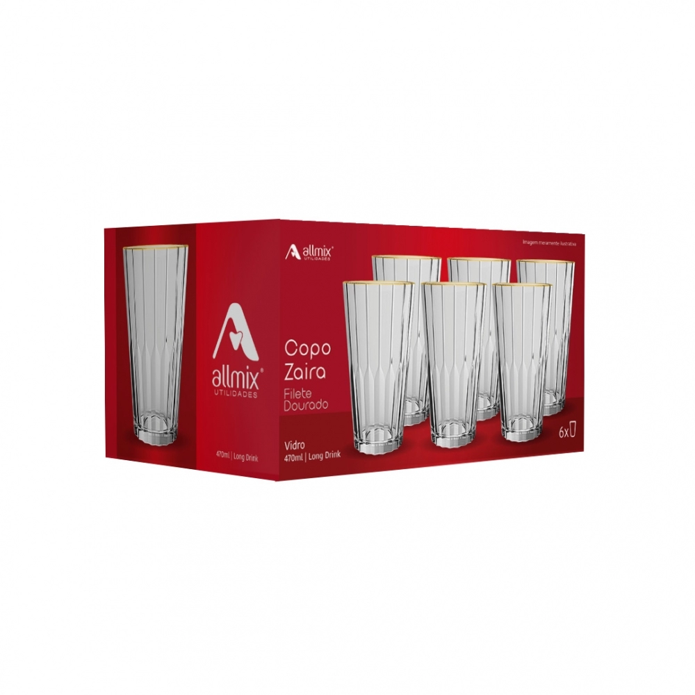 Este link contém: o Copo de Vidro Long Drink Zaira Filete Dourado 470ml, uma peça que combina sofisticação e exclusividade em cada detalhe.