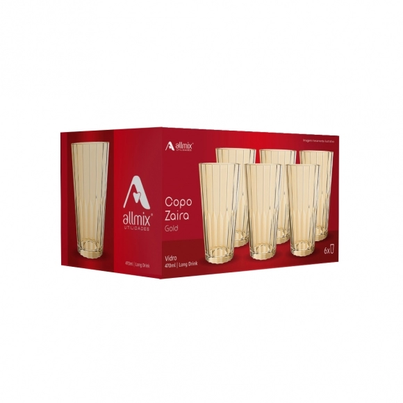 Este link contém: o Copo de Vidro Long Drink Zaira Gold 470ml, perfeito para quem busca unir sofisticação, funcionalidade e elegância em um só item.