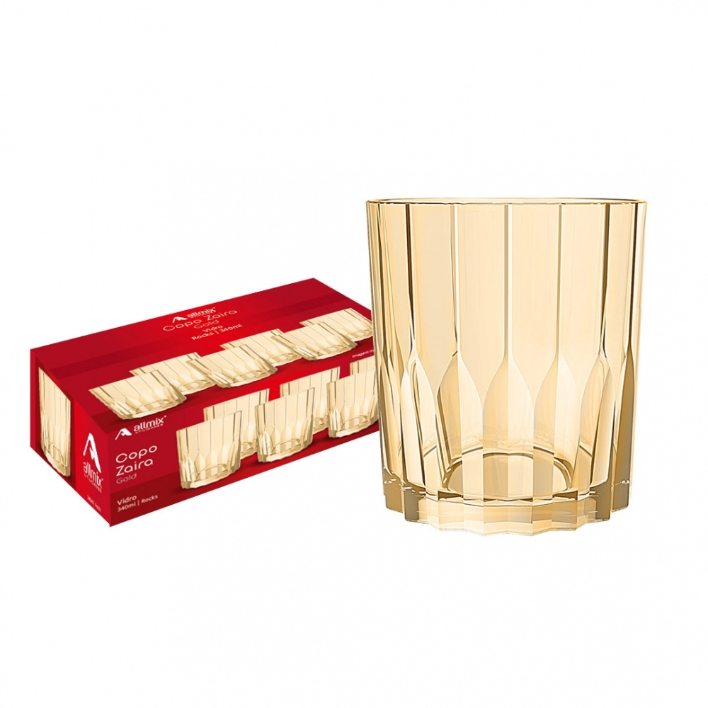 Com transparência cristalina e detalhe gold que destaca ainda mais sua beleza, o Rocks Zaira Gold é indispensável para bares, restaurantes, hotéis, buffets e também para compor o mix de produtos sofisticados em lojas de presentes e utilidades.