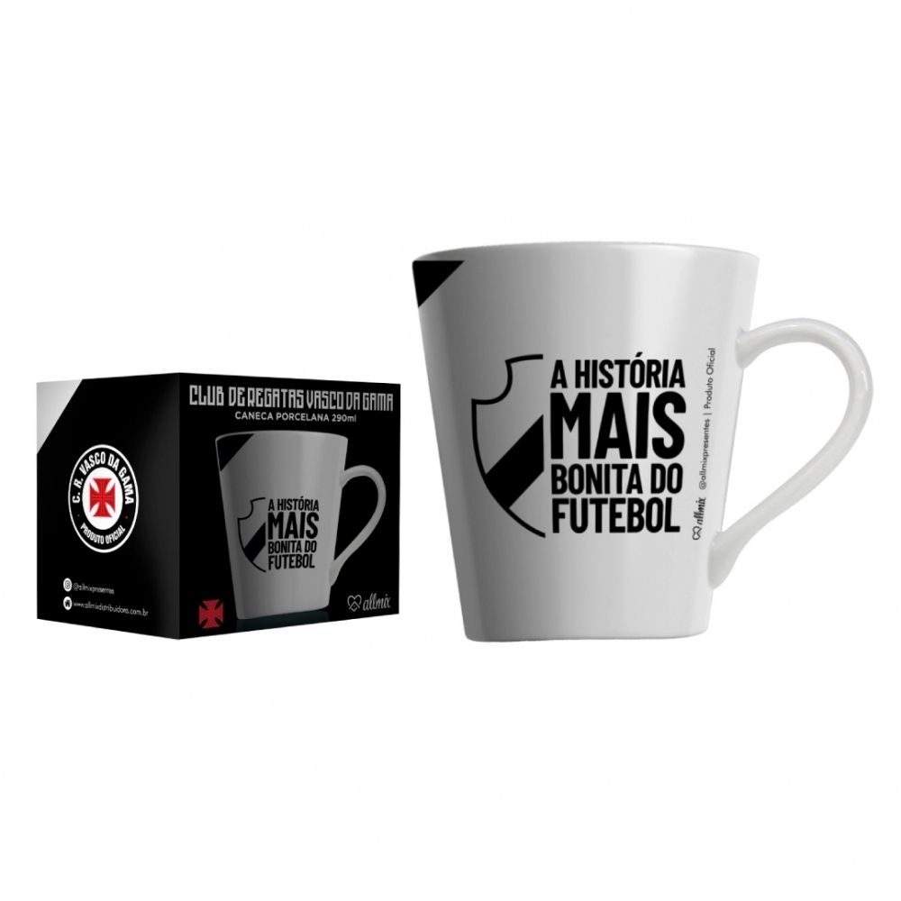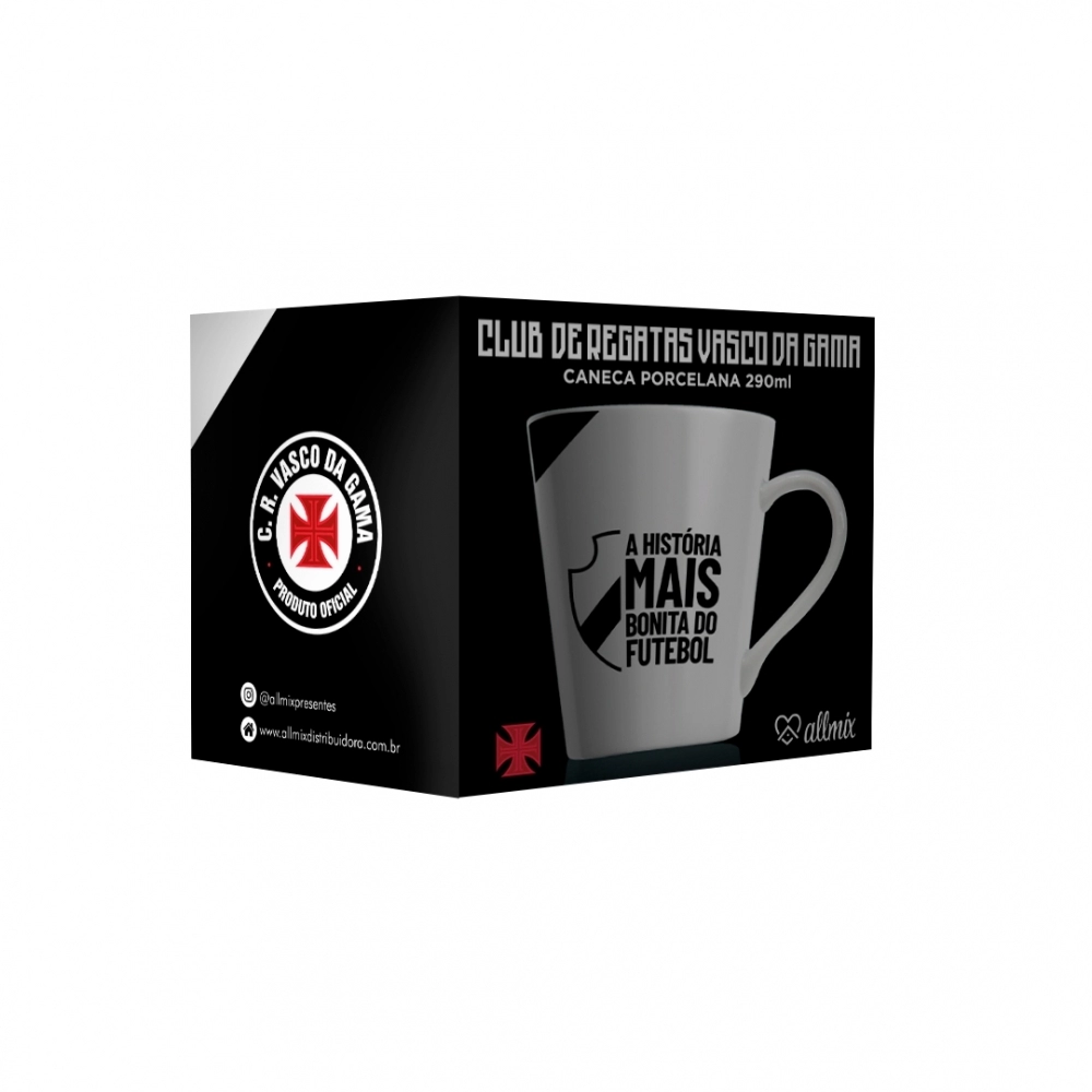 Coleção inspirada nos torcedores do Vasco. Produzido em porcelana com escudo do time estampada. Possui 290ml, ideal para servir bebidas quentes. Contém embalagem personalizada, sendo uma excelente opção para presentes.