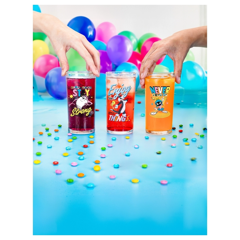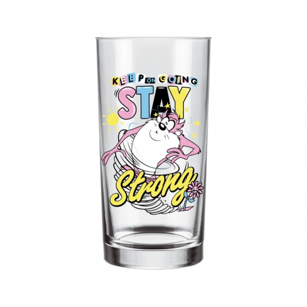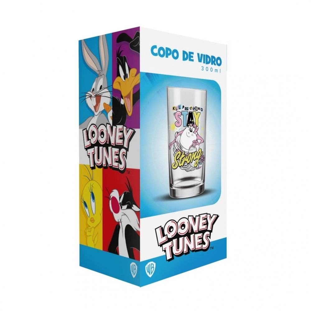Coleção inspirada nos personagens da Looney Tunes. Produto produzido em vidro Incolor com estampa do Taz. Possui 300ml, ideal para servir água, sucos e bebidas em geral.