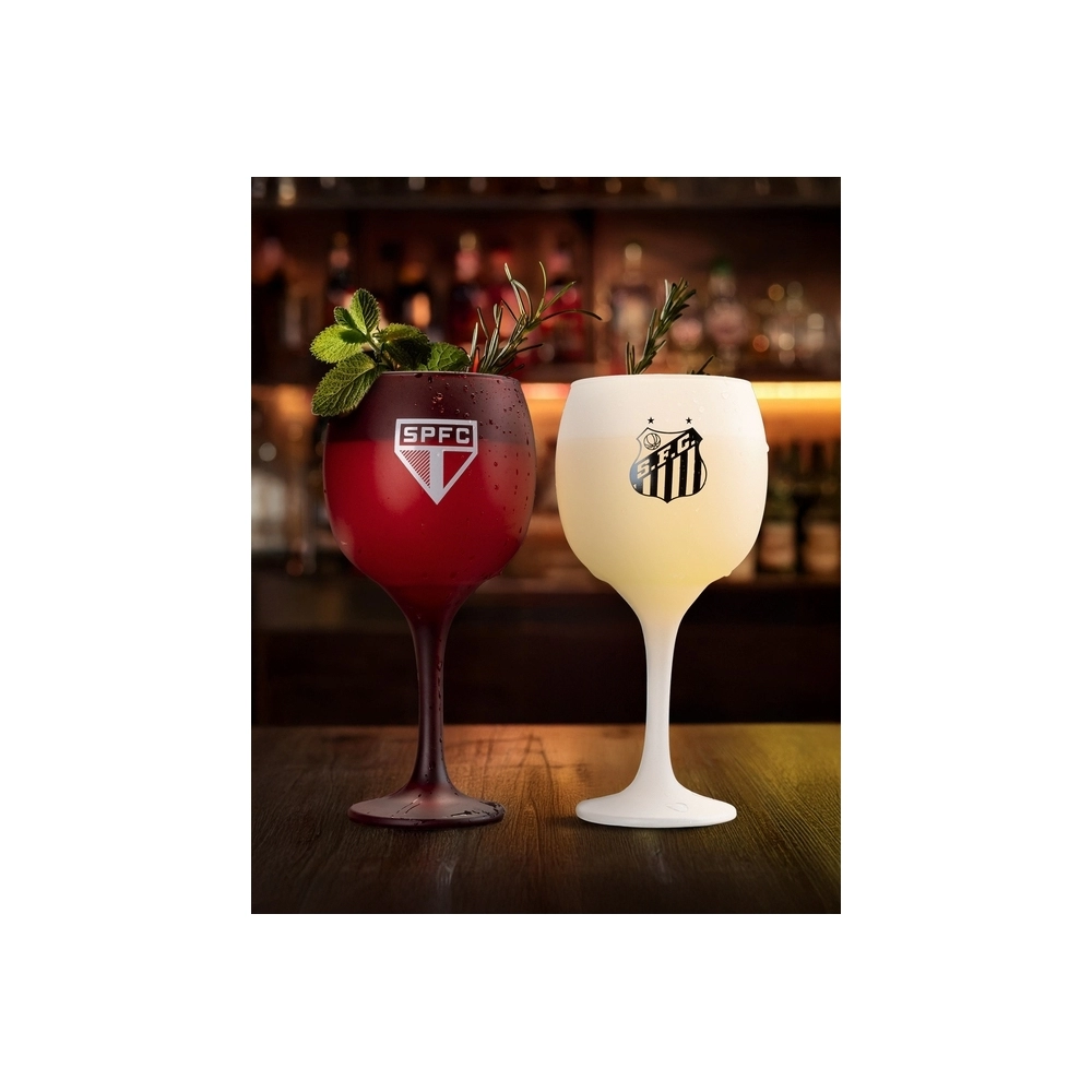 Design Exclusivo Santos – Com o logo oficial do Santos, esta taça é perfeita para os torcedores que desejam celebrar a paixão pelo time de forma elegante e estilosa.