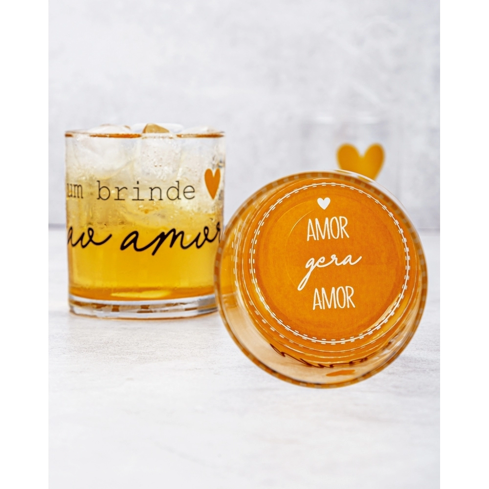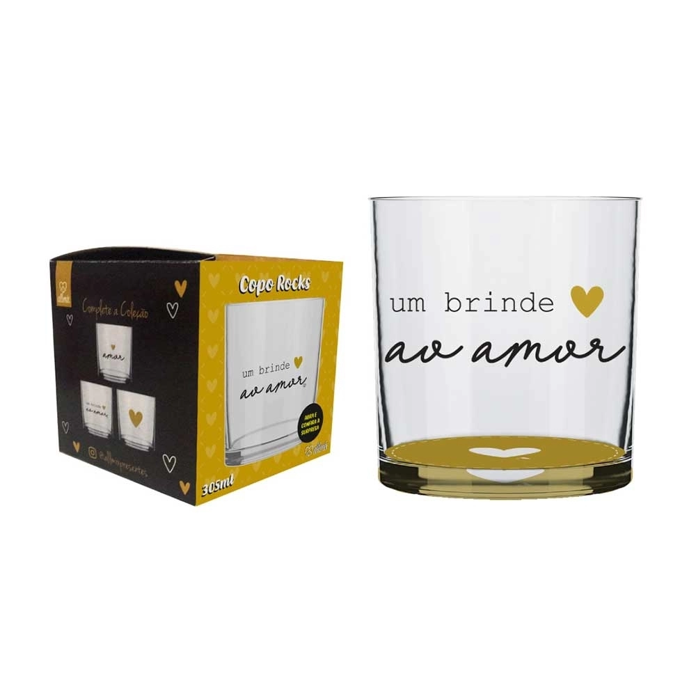 Com a Coleção Love, o amor é celebrado todo dia! Possui design exclusivo e apaixonante! Produto produzido em vidro Incolor e estampa de corações com os dizeres "Um brindo ao amor". Possui 305ml, ideal para servir whisky, drinks e bebidas em geral. Contém embalagem personalizada, sendo uma excelente opção para presentes