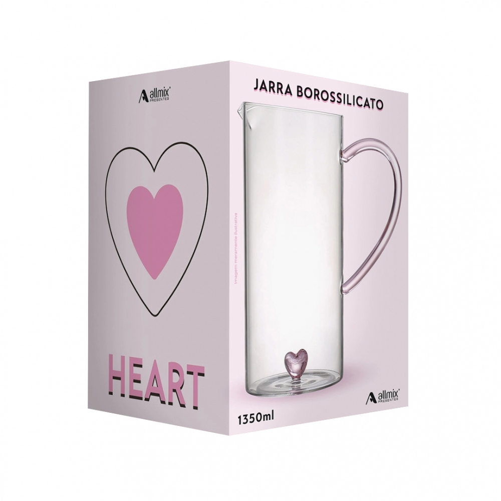 Ofereça em sua loja uma jarra que une qualidade, estilo e emoção. A Jarra Borossilicato 1350ml Coração é a escolha certa para clientes que buscam sofisticação no dia a dia ou em momentos especiais.