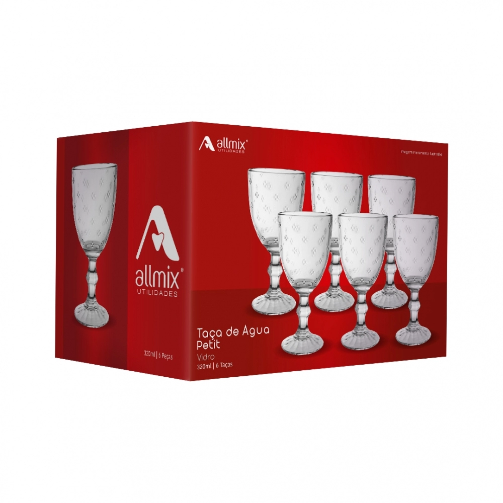 Destaques: taça de vidro transparente e resistente, capacidade de 320ml, vai ao micro-ondas e à lava-louças, design elegante da linha Petit Allmix, ideal para bares, restaurantes, hotéis e lojas de presentes, combinando sofisticação, praticidade e qualidade superior para o seu negócio.