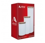 O Conjunto com 3 Potes de Vidro Borossilicato Redondos com Tampa de Bambu Allmix é a escolha ideal para lojistas e revendedores que buscam oferecer produtos premium e sustentáveis, com acabamento natural e alto valor percebido. Uma linha que une elegância, resistência e praticidade, reforçando o compromisso da Allmix com qualidade, design e inovação no segmento de utilidades domésticas de vidro.