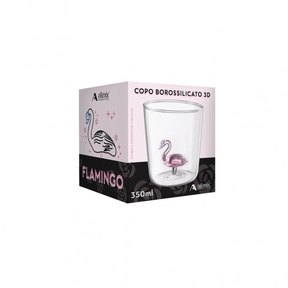 Este link contém: o Copo Borossilicato 3D 350 ml Flamingo Allmix, uma peça moderna, criativa e altamente atrativa, ideal para transformar o momento de consumo de bebidas em uma experiência visual única. Com design interno em formato de flamingo em efeito 3D, o copo é perfeito para lojas de presentes, cafeterias, confeitarias, papelarias, utilidades domésticas e revendedores B2B que buscam produtos diferenciados, com alto valor percebido e forte apelo de venda.