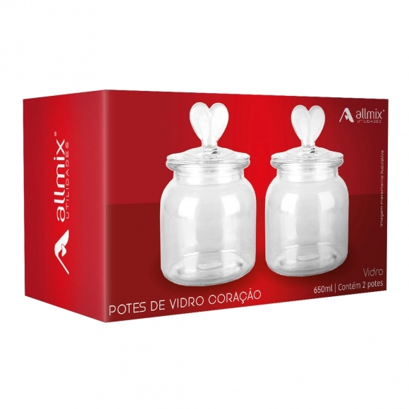 Este link contém: o Conjunto com 2 Potes de Vidro Coração 650 ml Allmix, uma opção charmosa e funcional para armazenar alimentos com organização e estilo. Com design delicado em formato de coração, o conjunto une beleza e praticidade, sendo ideal para compor cozinhas, mesas decorativas, cafeterias, confeitarias, lojas de utilidades domésticas e revendedores B2B que buscam produtos com forte apelo visual e excelente potencial de venda.