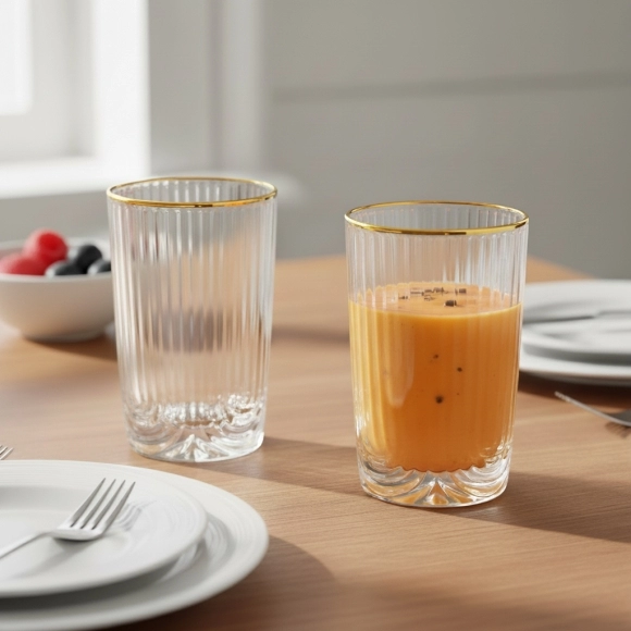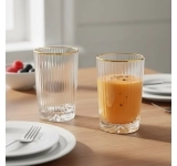 Fabricado em vidro de alta qualidade, o copo Laure Filete Dourado é um item de destaque que valoriza a apresentação das bebidas e oferece durabilidade.