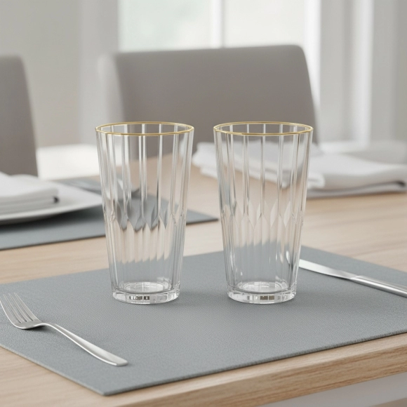 Com design clean e moderno, o destaque vai para o filete dourado delicado, que transforma um simples copo em um elemento de decoração para sua mesa posta ou para o ambiente do seu negócio. Ideal para servir coquetéis, sucos, refrigerantes e drinks especiais com muito mais elegância.