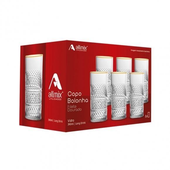 O Copo Long Drink de Vidro Filete Dourado Bolonha 390ml Allmix é um item essencial para revendedores, decoradores e estabelecimentos gastronômicos que buscam oferecer produtos premium com grande aceitação no varejo e forte impacto visual no B2B. Um modelo que alia beleza, exclusividade e alto valor agregado.