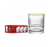 Produzido em vidro de alta qualidade, o copo apresenta design clássico com dimensões de 8,5 x 8,5 x 9 cm, perfeito para servir whisky, drinks, sucos, refrigerantes e coquetéis. Sua capacidade de 315ml o torna versátil e funcional, atendendo tanto o uso profissional quanto doméstico. O grande destaque fica para o filete dourado aplicado à mão, que confere um toque de luxo e exclusividade, elevando a percepção de valor do produto.