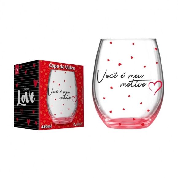 Produzido em vidro, o copo oferece praticidade e resistência para o uso diário, sendo ideal para diversos tipos de bebidas. Seu visual com tema “Love” cria uma conexão imediata com o consumidor, tornando o produto uma escolha certeira para presentes.
