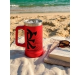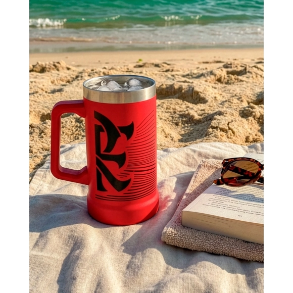 A tampa possui vedação em silicone, garantindo segurança no transporte e evitando vazamentos. Com dimensões de 13,4 x 8,5 x 17,6 cm, a caneca oferece excelente manuseio, presença visual marcante e durabilidade prolongada.