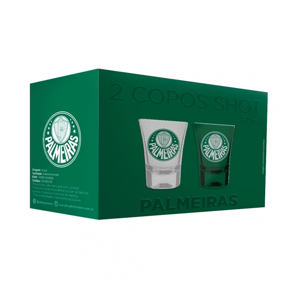 Coleção inspirada nos torcedores do Alviverde. Produzido em vidro incolor com escudo do time estampado. Possui 60 ml, ideal para servir Destilados. Contém embalagem personalizada, sendo uma excelente opção para presentes.