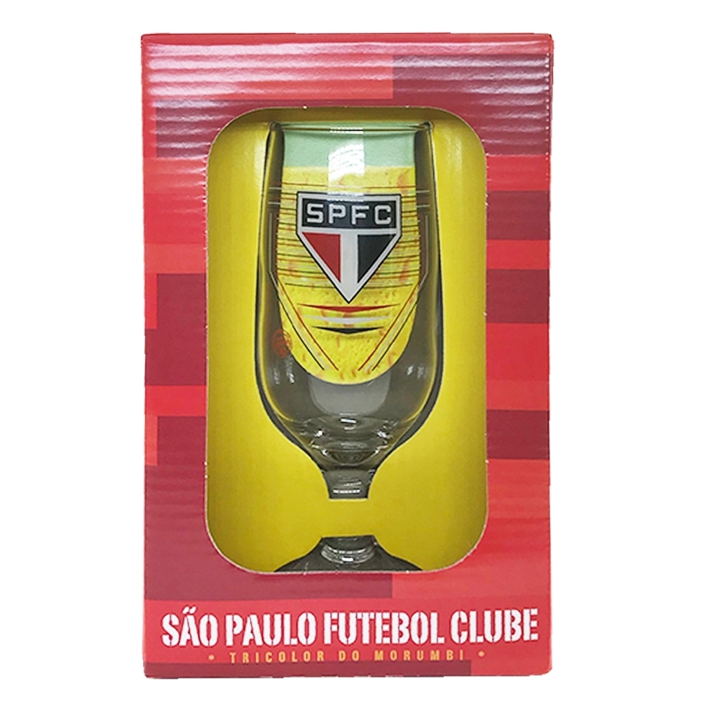 Coleção inspirada nos torcedores do Tricolor do Morumbi. Produzido em vidro incolor e acabamento estampado do escudo do time. Possui 300 ml, ideal para servir Chopes e Cervejas. Contém embalagem personalizada, sendo uma excelente opção para presentes.