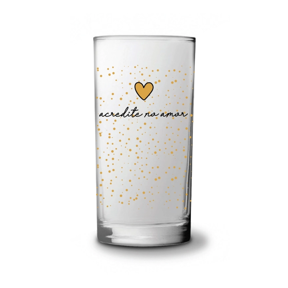 Com a Coleção Love, o amor é celebrado todo dia! Possui design exclusivo e apaixonante! Produto produzido em vidro Incolor com corações decorativos e os dizeres "Acredite no Amor". Possui 300ml, ideal para servir água, sucos e bebidas em geral. Contém embalagem personalizada, sendo uma excelente opção para presentes