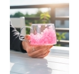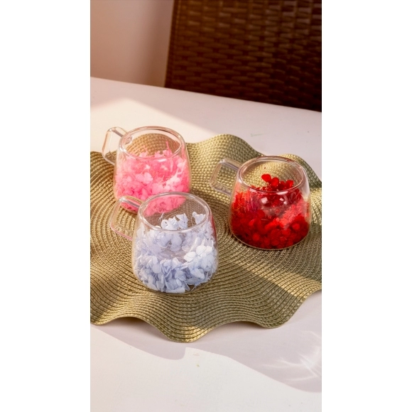 Produzida em vidro borossilicato com parede dupla, mantém a bebida na temperatura ideal por mais tempo e proporciona conforto ao segurar, sem aquecer as mãos. O detalhe exclusivo das flores secas encapsuladas encanta pelo charme artesanal, enquanto o acabamento em tom Pink transmite romantismo e sofisticação.