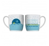 Produzida em porcelada com estampa "Que nunca nos falte a esperança de um dia melhor!". Possui 360ml, ideal para servir bebidas quentes. Contém embalagem personalizada, sendo uma excelente opção para presentes.