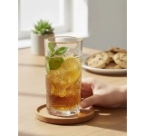 Fabricado em vidro de alta qualidade, o copo possui dimensões de 7,5 x 7,5 x 15 cm e capacidade de 390ml, ideal para servir long drinks, coquetéis, sucos, refrigerantes, água aromatizada e bebidas refrescantes com apresentação impecável. O destaque absoluto desta peça é o filete dourado aplicado manualmente, que traz brilho elegante, requinte e um toque artesanal que valoriza o acabamento premium.