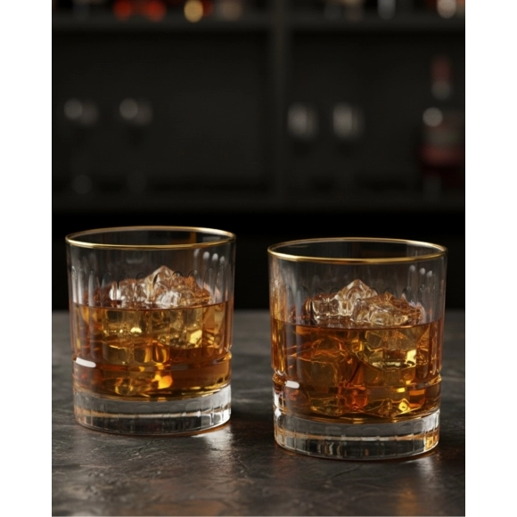 Produzido em vidro de alta qualidade, o copo apresenta design clássico com dimensões de 8,5 x 8,5 x 9 cm, perfeito para servir whisky, drinks, sucos, refrigerantes e coquetéis. Sua capacidade de 315ml o torna versátil e funcional, atendendo tanto o uso profissional quanto doméstico. O grande destaque fica para o filete dourado aplicado à mão, que confere um toque de luxo e exclusividade, elevando a percepção de valor do produto.