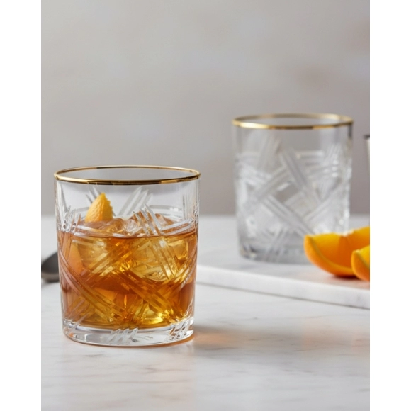 Produzido em vidro de alta qualidade, o copo possui design equilibrado com dimensões de 8,5 x 8,5 x 9 cm, oferecendo ergonomia, firmeza e excelente apresentação para bebidas como whisky, drinks, coquetéis, sucos e refrigerantes. Com 315ml de capacidade, torna-se uma peça versátil e funcional tanto para o uso profissional quanto para o uso residencial. O grande diferencial está no filete dourado aplicado manualmente, que adiciona um toque de luxo e exclusividade, elevando o padrão visual de qualquer ambiente.