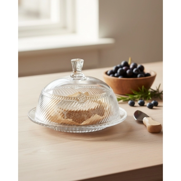 Fabricada em vidro de alta qualidade, a queijeira é composta por um prato de 19 x 19 x 1,0 cm e uma tampa com 16,5 x 16,5 x 12,5 cm, que proporciona proteção ideal contra poeira, insetos e ressecamento, preservando sabor, aroma e textura dos queijos. A transparência cristalina do vidro valoriza o alimento exposto, tornando a peça perfeita para mesa posta, vitrines e exposições gastronômicas.