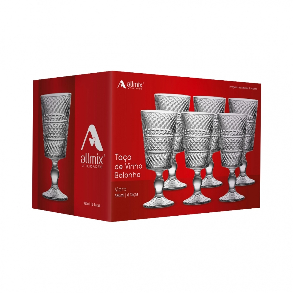 Este link contém: a Taça de Vinho de Vidro Bolonha 330ml Allmix, uma peça sofisticada e resistente que combina design elegante, brilho e praticidade, ideal para bares, restaurantes, hotéis, buffets, supermercados e lojas de utilidades domésticas que desejam oferecer produtos de alto padrão e excelente custo-benefício.
