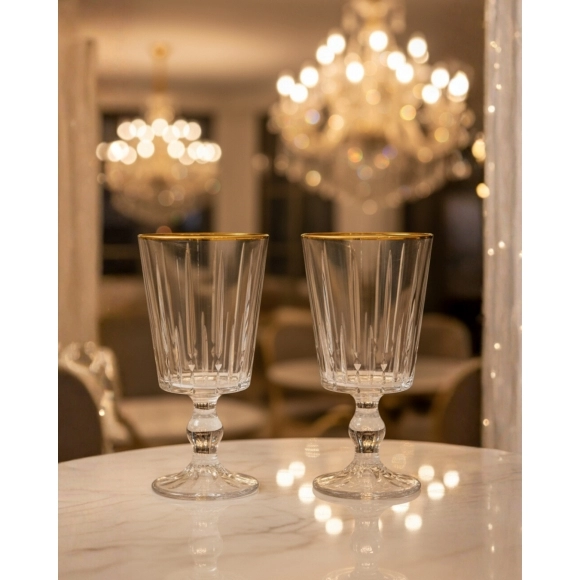 Produzida em vidro de alta qualidade, a taça Nápoles Filete Dourado se destaca pelo acabamento manual em filete dourado na borda, que confere um toque de luxo e sofisticação à mesa. Seu design equilibrado e proporções harmoniosas proporcionam conforto ao segurar e valorizam a apresentação das bebidas, tornando cada brinde mais especial.