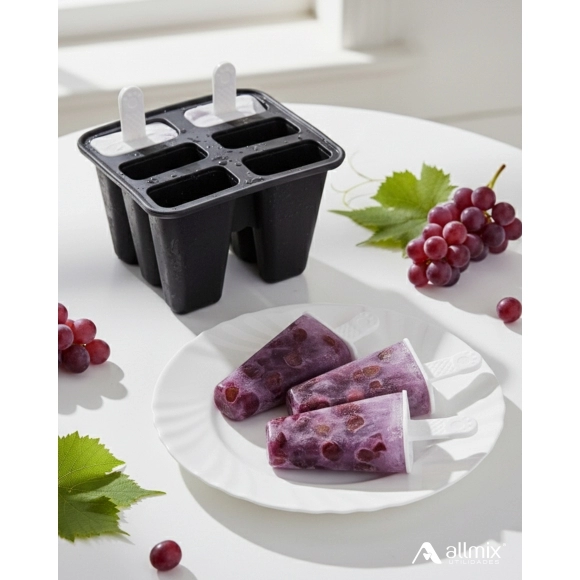 Produzida em silicone de alta qualidade, a forma é flexível, antiaderente e BPA Free, facilitando a retirada dos picolés sem quebrá-los e sem reter cheiros ou sabores.