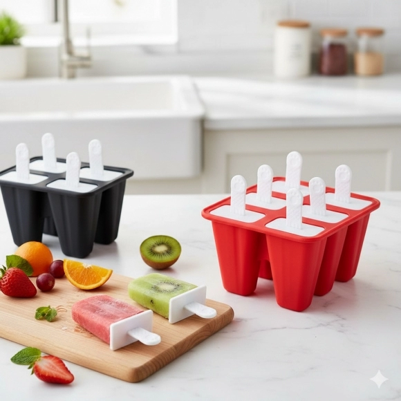 Este link contém a Forma de Silicone Preto com 6 Moldes para Picolé, perfeita para criar picolés e sobremesas geladas de forma prática e segura.