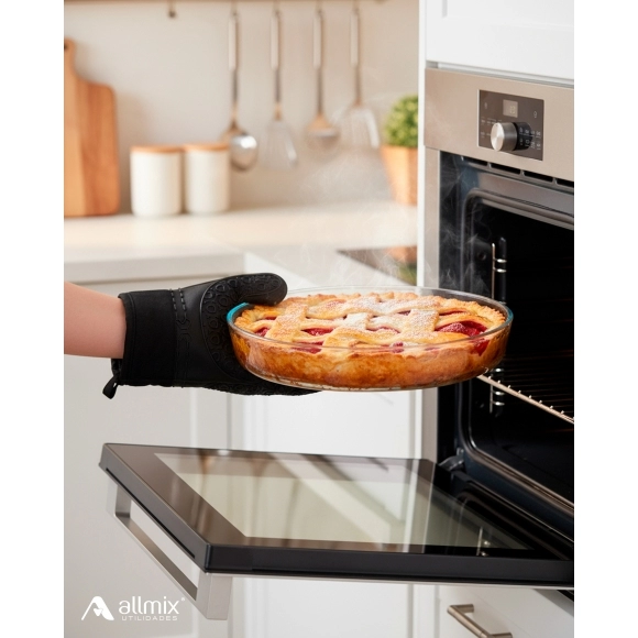 Produzida em silicone de alta qualidade e tecido resistente, a luva oferece flexibilidade, segurança e durabilidade, suportando temperaturas de -40°C a 230°C sem perder a integridade.