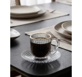 O conjunto inclui 2 xícaras com pires, oferecendo praticidade ao servir e garantindo um toque de requinte à mesa. A capacidade de 80ml é ideal para porções de espresso, tornando esse modelo perfeito para uso diário ou para receber convidados.