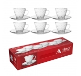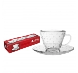 Este link contém: a Xícara de Chá com Pires de Vidro Petit 160ml, um conjunto sofisticado e funcional que une design moderno, praticidade e durabilidade, perfeito para cafeterias, hotéis, restaurantes e lojas de utilidades domésticas que valorizam produtos de qualidade e acabamento superior.