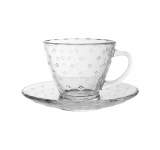 Com capacidade de 160 ml, é ideal para servir chás, infusões e bebidas quentes, proporcionando uma experiência agradável e sofisticada. O pires de vidro completa o conjunto com equilíbrio e harmonia, agregando valor visual à mesa posta e tornando o momento do chá ainda mais especial.